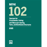 NFPA 102 provides requirements extracted from NFPA 5000 and NFPA 101 for life safety in relation to fire, storm, collapse, and crowd behavior in tents, membrane structures, and assembly seating.