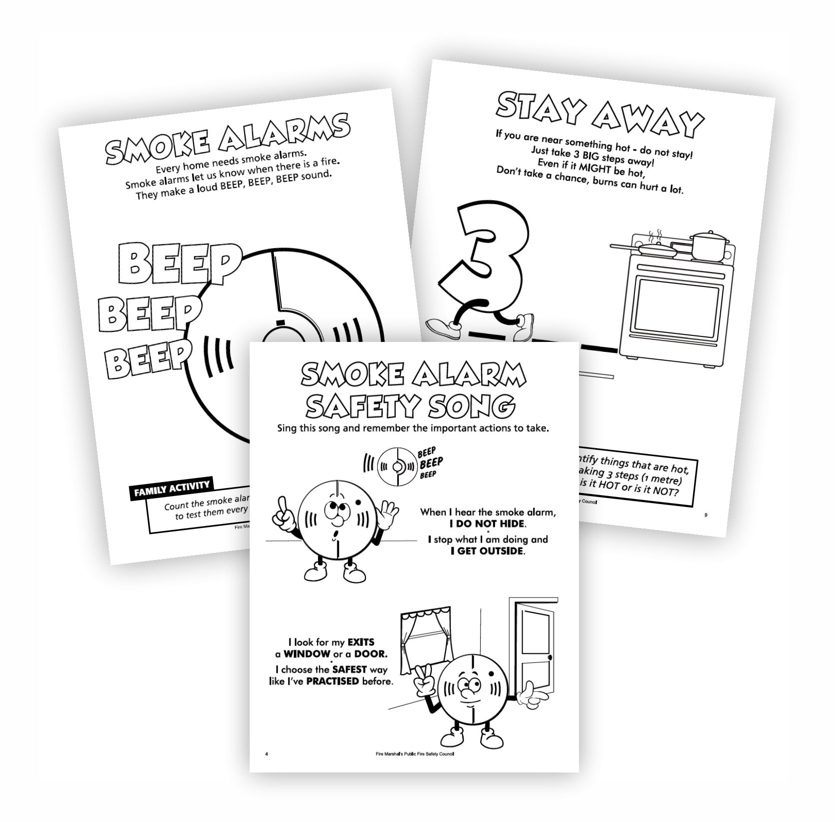 This colouring and activity book is designed for Pre-K age children and is full of colouring pages, puzzles, and family activities. With an introduction for parents/guardians at the beginning of this book, it's an excellent tool for encouraging fire safety dicussions with the whole family.
