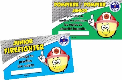 A great way for kids to reinforce their commitment to fire safety, these colourful cards allow them to sign their name and pledge to practise fire safety. With English on one side and French on the reverse, these 9 cm x 5 cm (3.5” x 2”) junior firefighter cards make an excellent handout following a fire safety lesson. Pkg. of 100