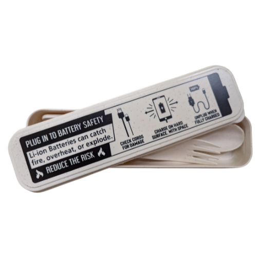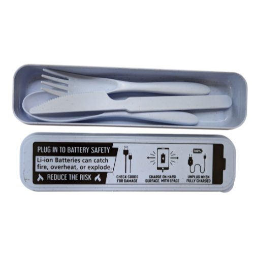 These adorable cutlery sets are an excellent choice for your public education events. The practical and portable cutlery set is not only high quality and durable but also features bold and clear lithium battery messaging.