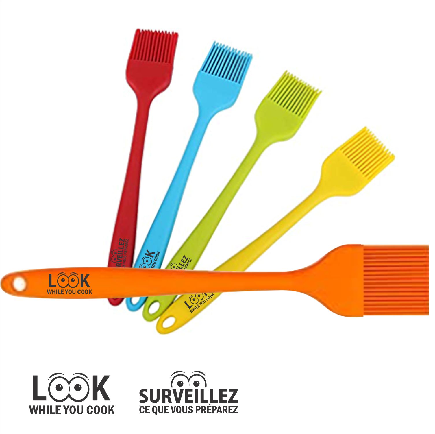 These smaller silicone basting brushes measure 20 cm x 4 cm (8" x 1.5") and are a great reminder for people to "Look While You Cook".