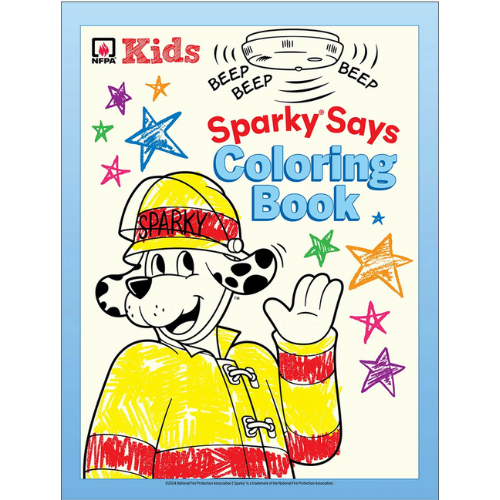 This 8-page coloring book is geared toward children in pre-K through grade 1, and each coloring page features a different fire safety message from Sparky®. This cute coloring book helps inform kids about important safety messages, including: