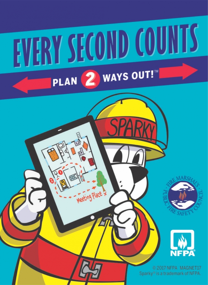 Magnets are a perfect way to keep fire safety messages in the spotlight all year. These 7cm x 9.5cm (2.75" x 3.75") magnets display the message "Every Second Counts. Know 2 Ways Out." They're easy to distribute and will stick to any metal surface.