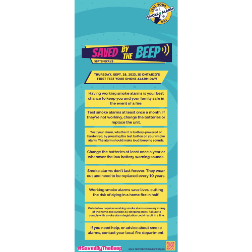 The Fire Marshal's Public Fire Safety Council is delighted to partner with the OFM for Test Your Smoke Alarm Day and provide high quality printed materials for your local community. Pre-orders are now closed but English materials are still available for purchase. For materials in languages other than English, please visit www.savedbythebeep.ca!